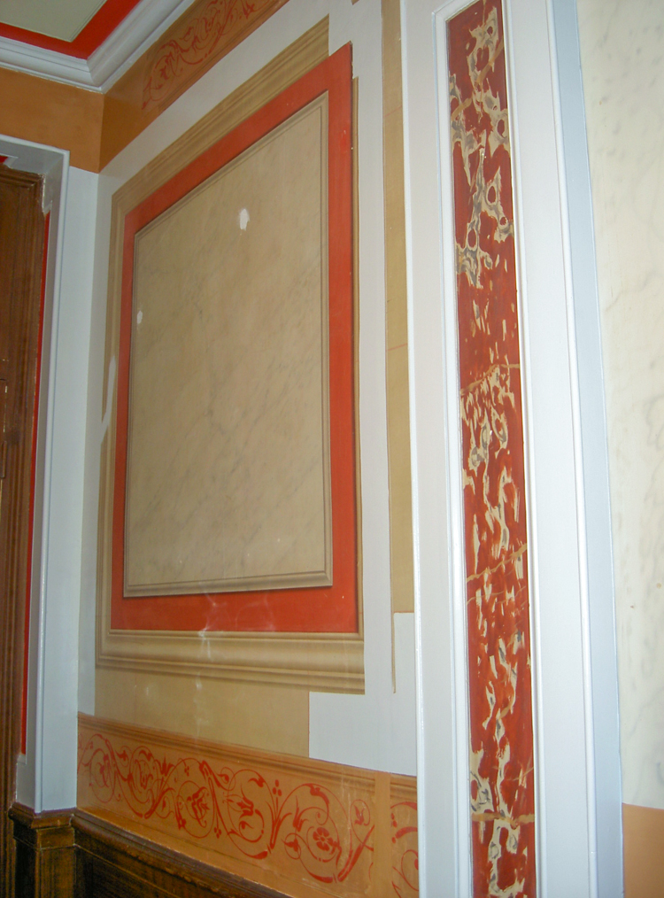 panneau 1 – après restauration (marbre et mouluration en trompe-l’oeil)