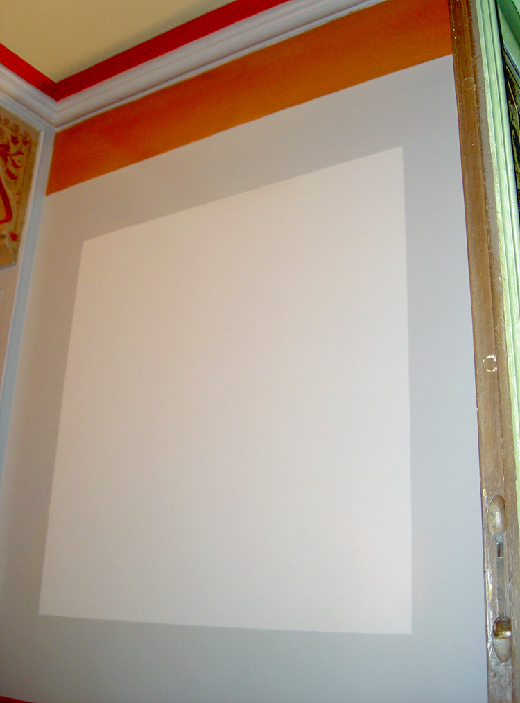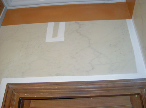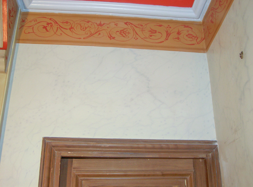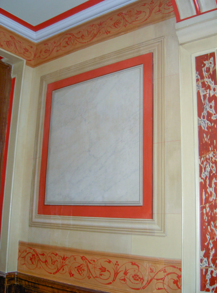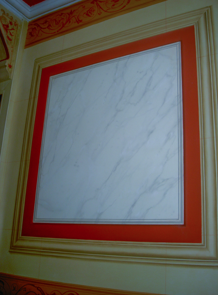 panneau 2 – recréé à l’identique du panneau 1 (marbre et mouluration en trompe-l’oeil)